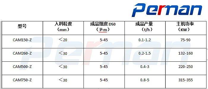 (2)高細度:配備自分流高濃相分級系統(tǒng),粉碎粒度在D50=5~15um可調(diào)。