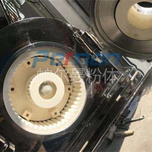 CAM-S雙軸陶瓷粉碎機工作運轉中物料由加料系統(tǒng)均勻的送入粉碎室受到高速旋轉的粉碎盤的強烈沖擊,同時受到離心力的作用,與粉碎齒圈發(fā)生碰撞,受到剪切、摩擦、碰撞等多種綜合力的作用,使物料粉碎,被粉碎的物料隨氣流運動到分級區(qū),通過變頻調節(jié)的分級輪,對粗細物料進行分離,符合細度要求的產品隨氣流進入旋風收集器和除塵器收集,粗物料返回分級區(qū)二次粉碎。