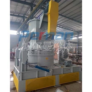 碳酸氫鈉通過失重螺旋喂料稱定量均勻喂料進入CAM空氣分級磨,通過高速旋轉的磨塊與齒圈形成碰撞,摩擦,剪切多種作用力下粉碎,粉碎后隨氣流進入分級區,合格的物料通過分級輪進入煙道進行反應,粗料落入粉碎區繼續粉碎,顆粒的大小可調整分級輪的大小獲得。