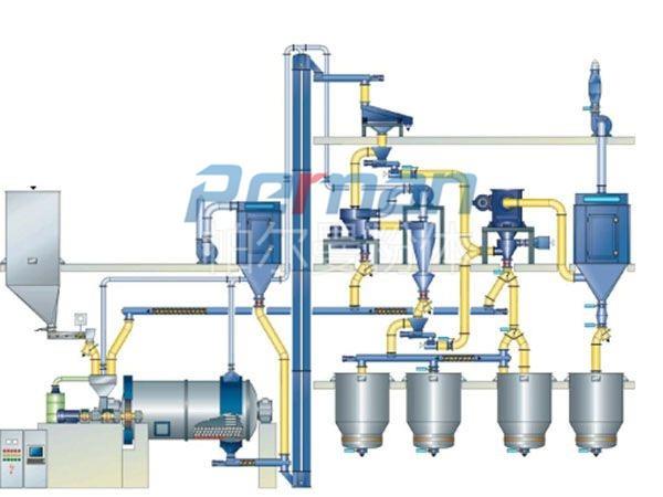 ● 電控系統采用程序控制,控制整個生產流程,從進料料倉、研磨分級,直到產品包裝。